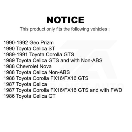 Front Rear Ceramic Brake Pads Kit For Toyota Corolla Celica Geo Prizm Chevrolet Nova KTC-100320 $61.98Add to cart