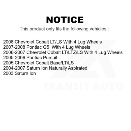 Rear Brake Drums Pair For Chevrolet Cobalt Pontiac G5 With 4 Lug Wheels K8-101883 $99.54Add to cart