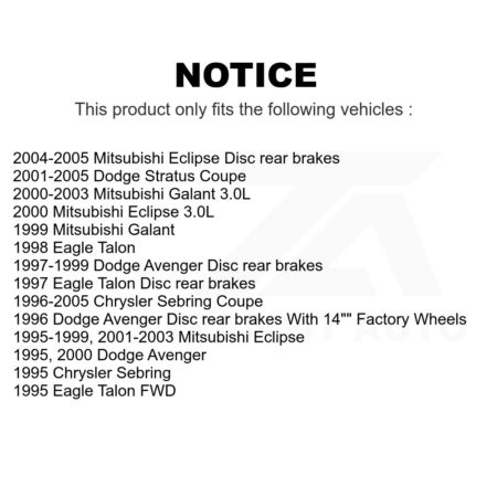 Rear Brake Rotors & Ceramic Pad Kit For Mitsubishi Chrysler Sebring Dodge Eclipse Stratus K8T-101764 $99.85Add to cart