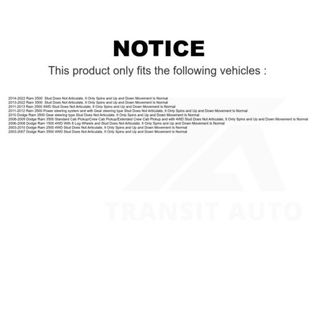 Front Suspension Ball Joints Pair For Dodge Ram 2500 1500 3500 KTR-101325 $58.06Add to cart