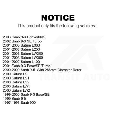 Front Brake Rotors Pair For Saturn Saab L200 9-5 9-3 L300 LS1 L100 LW200 LS2 900 LW300 LW2 K8-100300