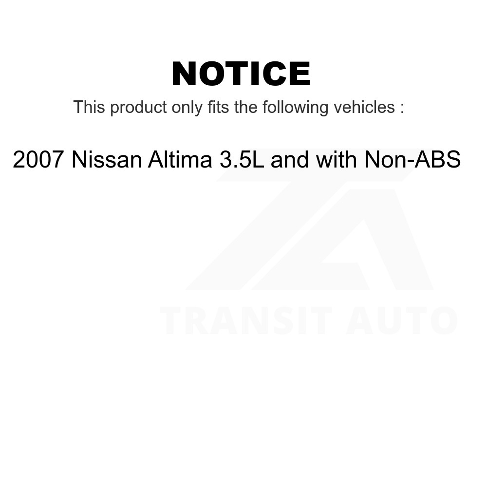 Front Rear Wheel Bearing & Hub Assembly Kit For 2007 Nissan Altima 3.5L with Non-ABS K70-101850