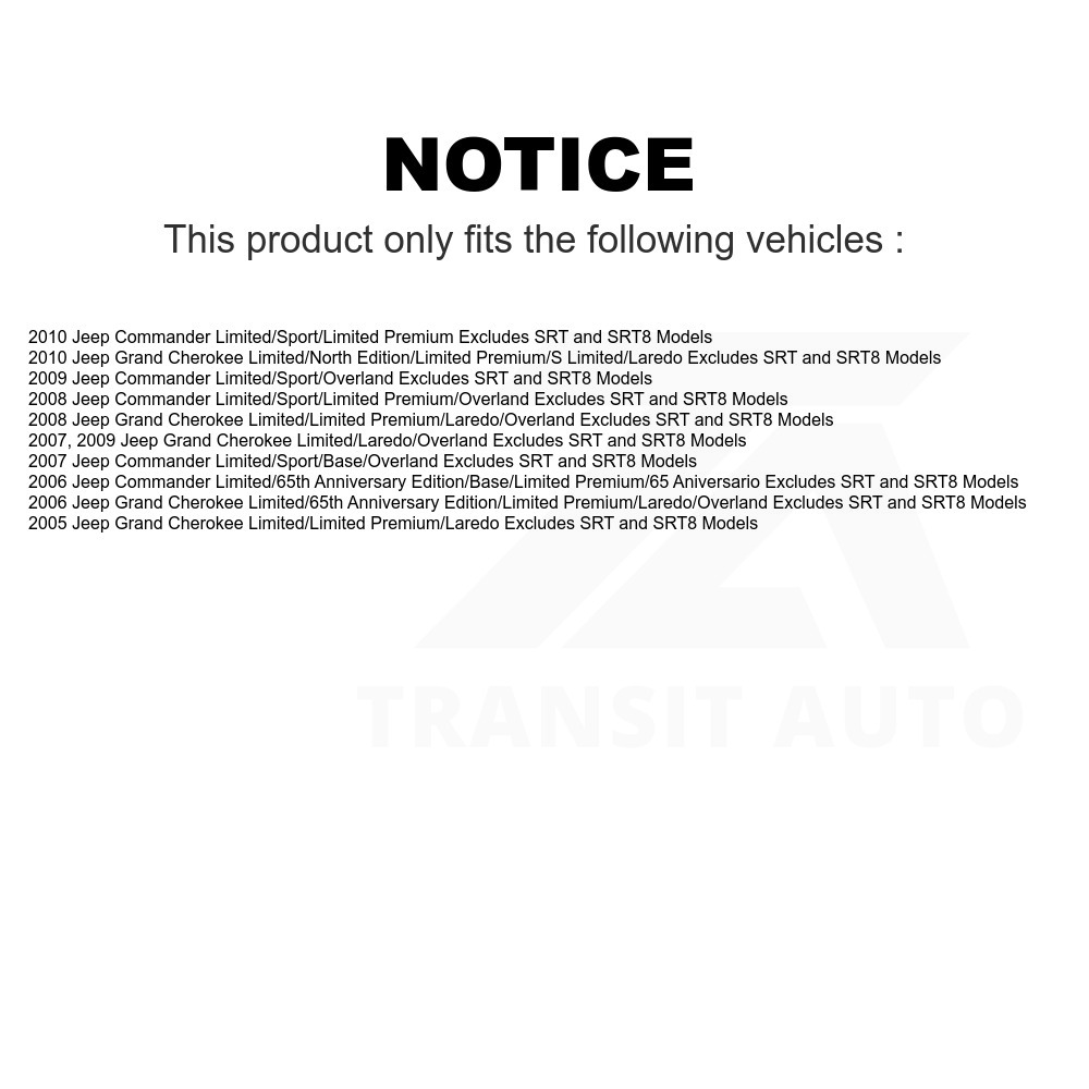 Front Strut & Coil Spring Kit For Jeep Grand Cherokee Commander Excludes SRT SRT8 Models K78A-100095