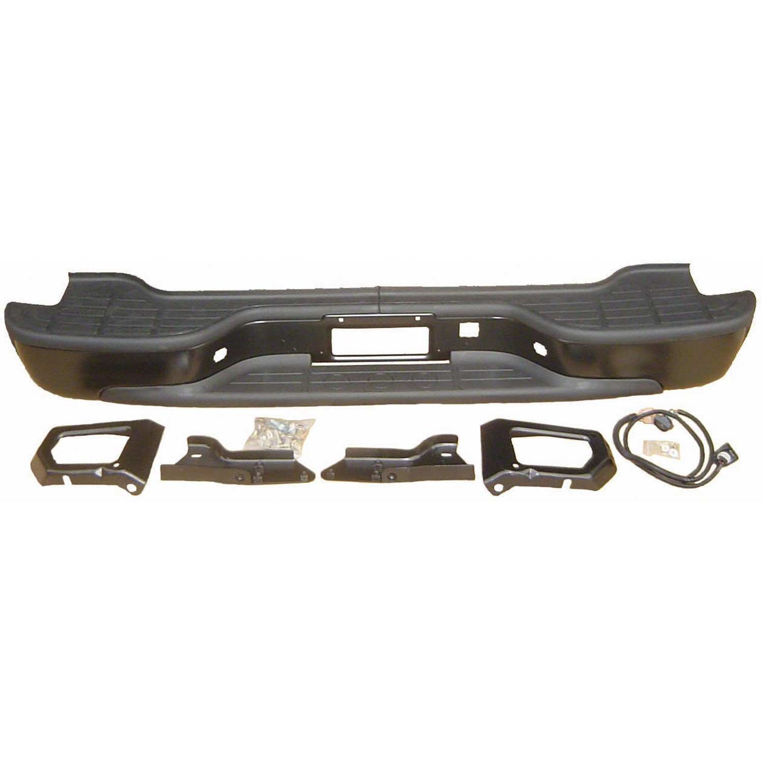 Rear bumper assembly includes pads/brackets/hardware/lic. lamp; black; except Denali – GMC YUKON 2000-2006